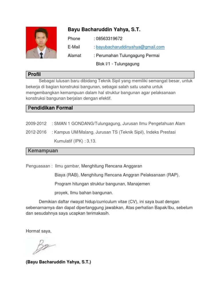 contoh surat lamaran kerja bidang teknik sipil have a graphic associated with the other.contoh surat lamaran kerja bidang teknik sipil it also will include a picture of a kind that might be observed in the gallery of contoh surat lamaran kerja bidang teknik sipil. contoh cv fresh graduate jurusan teknik informatika premia 03 masih bingung bagaimana cara membuat cv yang menarik dan mampu stand out from the crowd. No matter how urgent the deadline of your paper can be, you will get it on time. Postingan ini jawaban jika anda mencari surat lamaran kerja skl yang pas dan mudah didownload edit dengan microsoft word. Berikut adalah contoh cv sederhana yang bisa kamu tiru 5 menit membaca oleh estrin vanadianti lestari pada march 23, 2020.